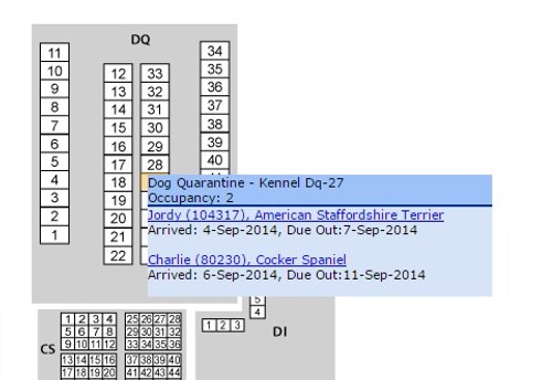 To see details of which animals are in an occupied kennel or enclosure, simply click on the kennel in question: